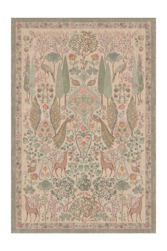 Le tapis Pavoni by Pip Kaki est un ajout enchanteur à votre intérieur. Le motif symétrique présente en son centre de gracieux paons, entourés de fleurs et d'arbres magnifiquement décorés. Parmi les fleurs et les arbres, vous découvrirez également des cerfs, des hérons et des cailles, ce qui donne au tapis une apparence unique et vivante.